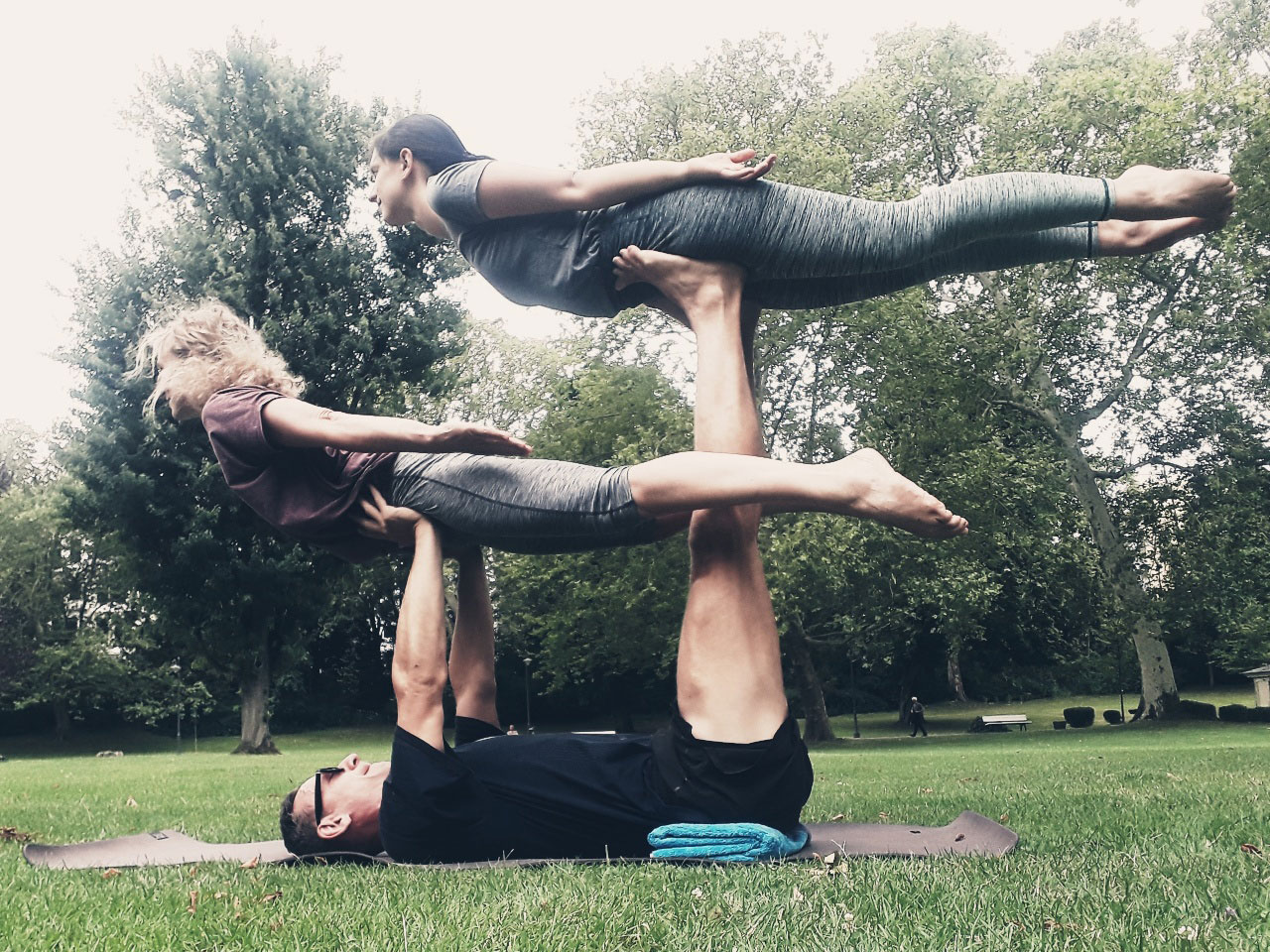 AcroYoga verbindet die Weisheit des Yoga, das liebevolle Wohlwollen der Thai-Massage und die dynamische Energie der Akrobatik. Acroyoga bietet einen geschützten Raum, in dem spielerisch und achtsam zugleich (Selbst-)Vertrauen wachsen kann und jeder mit der Unterstützung durch die anderen die kraftvolle Energie von akrobatischem Fliegen und die entspannende Wirkung von therapeutischem Fliegen empfangen kann. AcroYoga erprobt und trainiert Körperbewusstsein, Gleichgewicht, Körperspannung und Koordination, Vertrauen und Verantwortung, sowie die Fähigkeit loszulassen und zu entspannen.