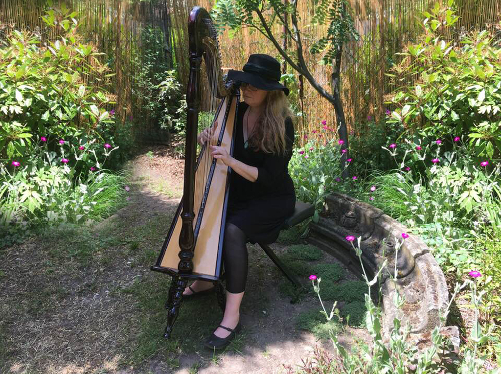 Die Wiesbadener Harfenistin berührt mit zarten und poetischen Harfenklängen und Stimme und ist im Park bei mehreren Performances zu erleben: