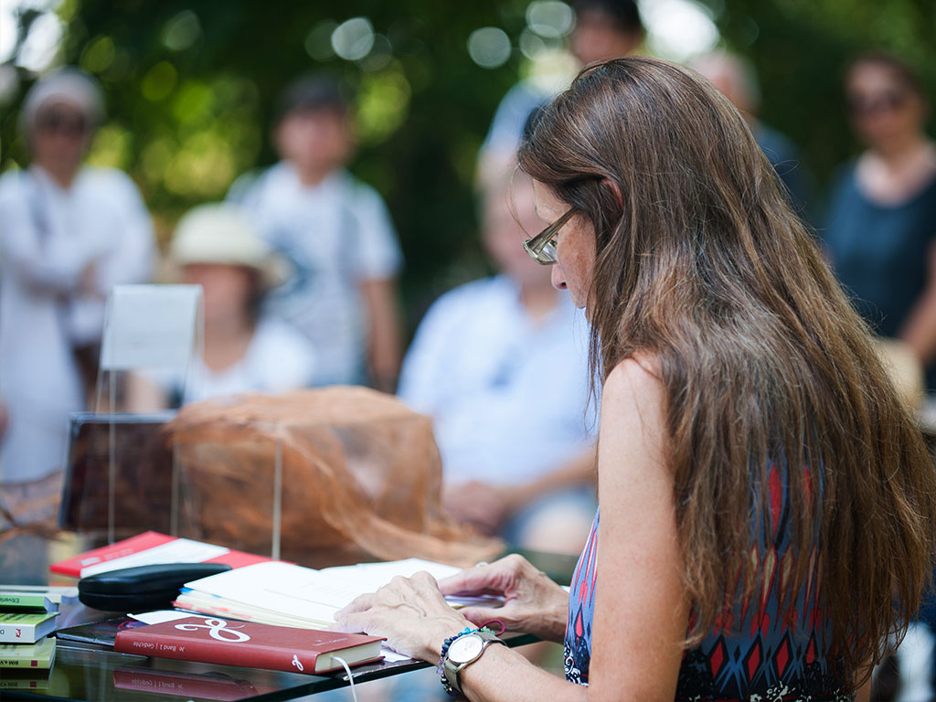 Hervorgegangen ist das Zusammenspiel von „Klimper und Palaver“, das inzwischen ein eingespieltes Duo ist, aus ihrer ersten gemeinsamen musikalischen Lesung bei Poesie im Park 2018 .